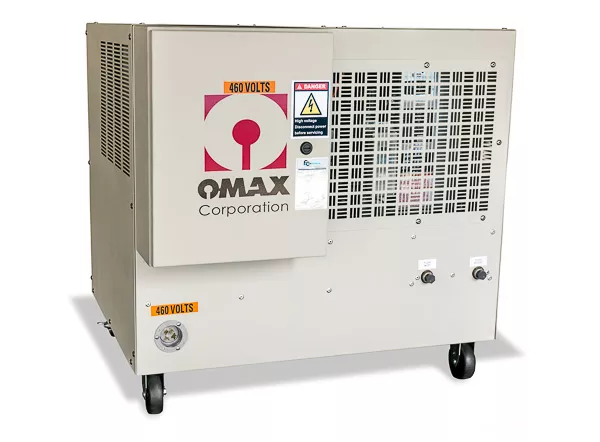 The air-cooled OMAX Chiller optimally supplies inlet water at a consistent temperature, which extends pump seal life for longer, more sustainable production. Using the 5 Ton Chiller or larger also allows for seamless interaction with the OMAX Water Recycling System to significantly reduce overall water consumption.
